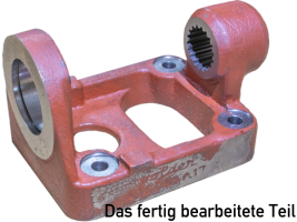 In der hinteren Bohrung fehlt noch eine Verzahnung. Diese wird zur Zeit in einem Spezialbetrieb mittels Räumen gefertigt.