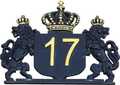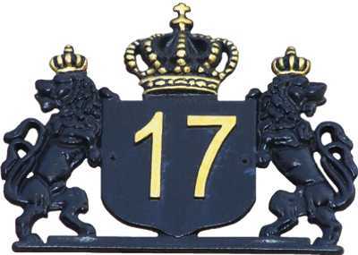 Hausnummernschild mit Krone und Löwen